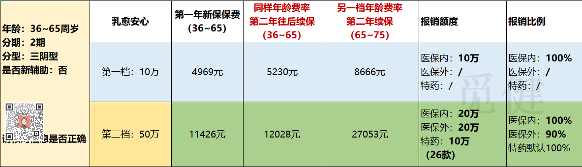 如题,我妈2022年5月25查出三阴乳腺癌2a2期,肿块差不多2cm左右,没淋巴结转移,想给我妈投个复发保险,当然不希望生效,以防万一,大家帮我看下投哪种好,主要担忧三阴复发了,药可选择非常少,免疫治疗也是不一定都可以用,得有突变才能用,所以到时只有化疗,费用应该也没多少,感觉没必要,还不如给老妈,买吃买喝和去旅游,所以有点犹豫,大家能不能给我提点建议,谢谢