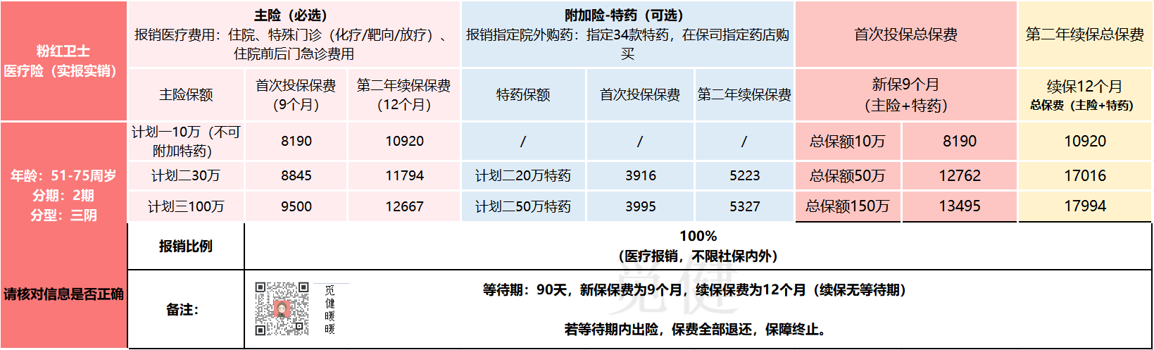 我买的粉红卫士给付型的基础款出险赔付10万。因为我除医保外还买了住院医疗