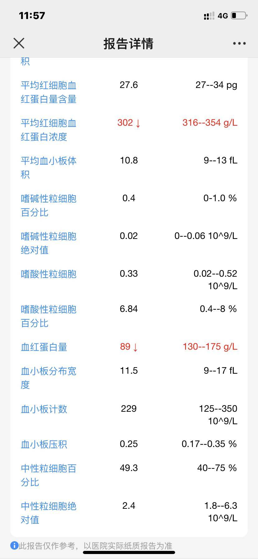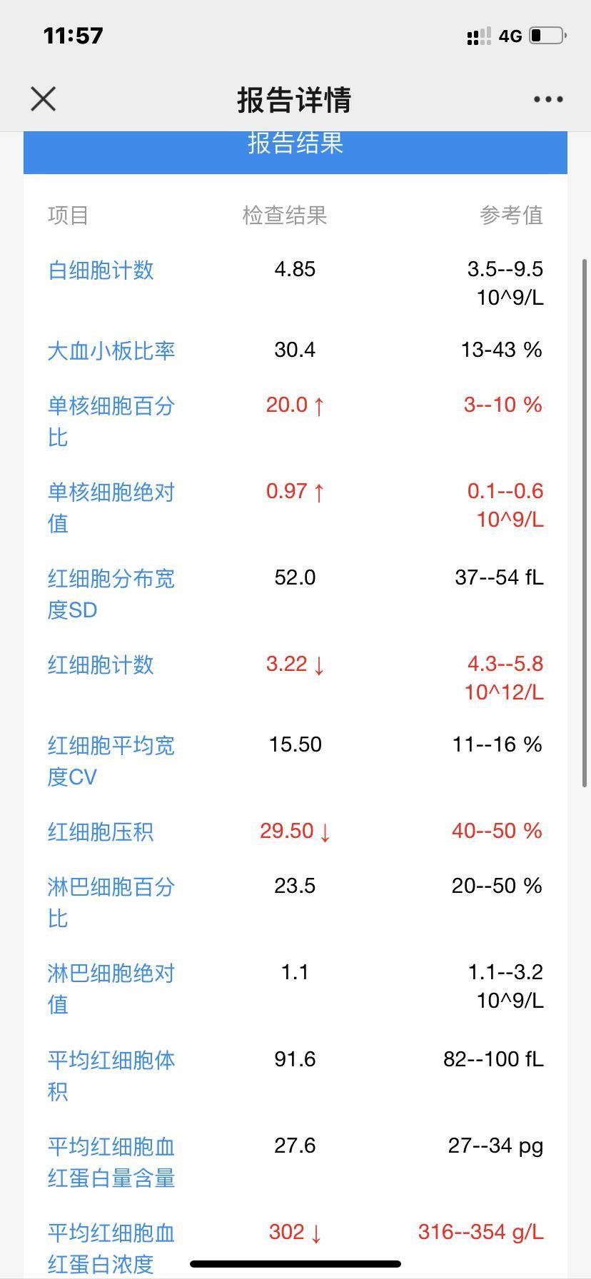 贫血这几个月指标也在逐渐下降,白蛋白也在下降,近两周觉得腹胀,走路气喘,今天复查的肝胆彩超,显示盆腔有积液,胸CT报告明天出来😌