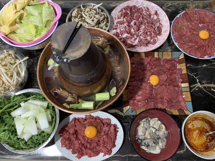 今天小岛上午下雨☔️天气凉爽,午餐我请一位男同事,在我的小厨房吃火锅。