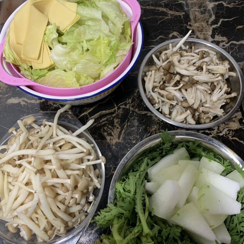 西生菜🥬茼蒿,干豆腐和冬瓜。蟹味菇还有茶树菇