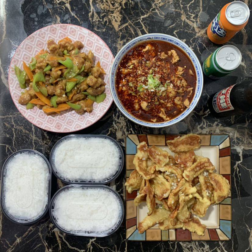 白米饭是单位附近一家快餐店自己隔水蒸的米饭,口感非常好。青菜本打算做一个白灼生菜,料都备好了。但是别的菜都上桌了,怕凉了不好吃,尤其是锅包肉和溜肉段。直接就开造啦!