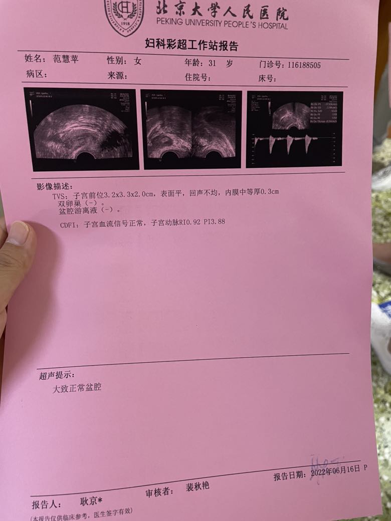 上个月中旬复查了妇科B超,卵巢囊肿手术完两个月,一切正常,医生说半年复查就行了,这下终于放心了,没做手术前总是时不时担心,害怕,还是要早发现早治疗,揪着的心舒坦了