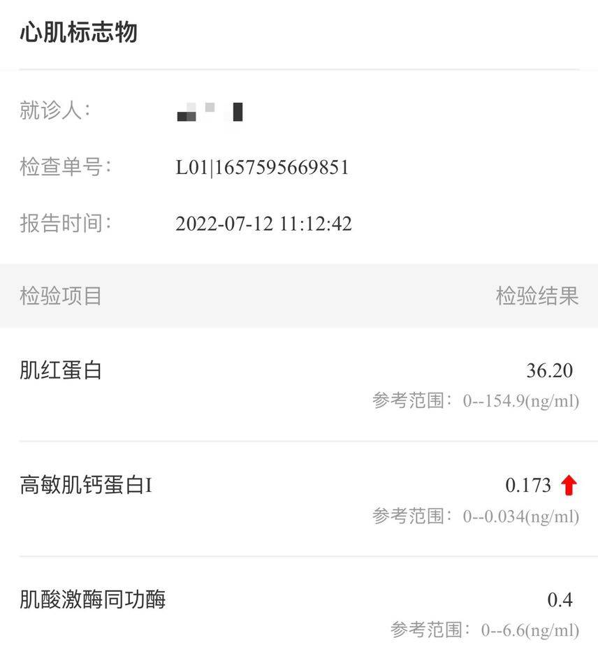 于是暂停用免疫,马上安排了心电图,心脏彩超,并于次日一早重查心肌标志物。结果比前一天还高了点。