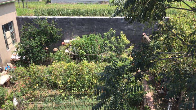 外婆家的小院👍我和老公爬到房顶上在栽别人家的🍐