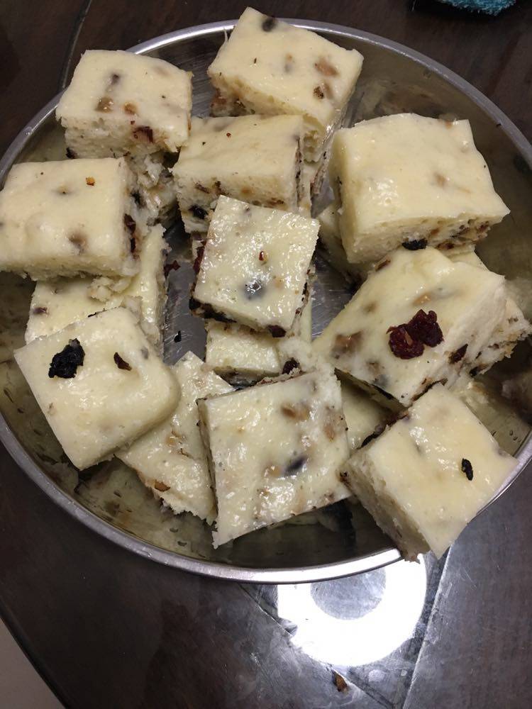 今天尝试做无糖的松糕。材料是牛奶、面粉、马蹄粉,红枣、蔓越莓干、南莓干,放了2.5克左右的干酵母。真的Q弹可口,还有浓浓的牛奶香味,红枣、蔓越莓干、南莓干的甜味足够,不用放糖也可以。