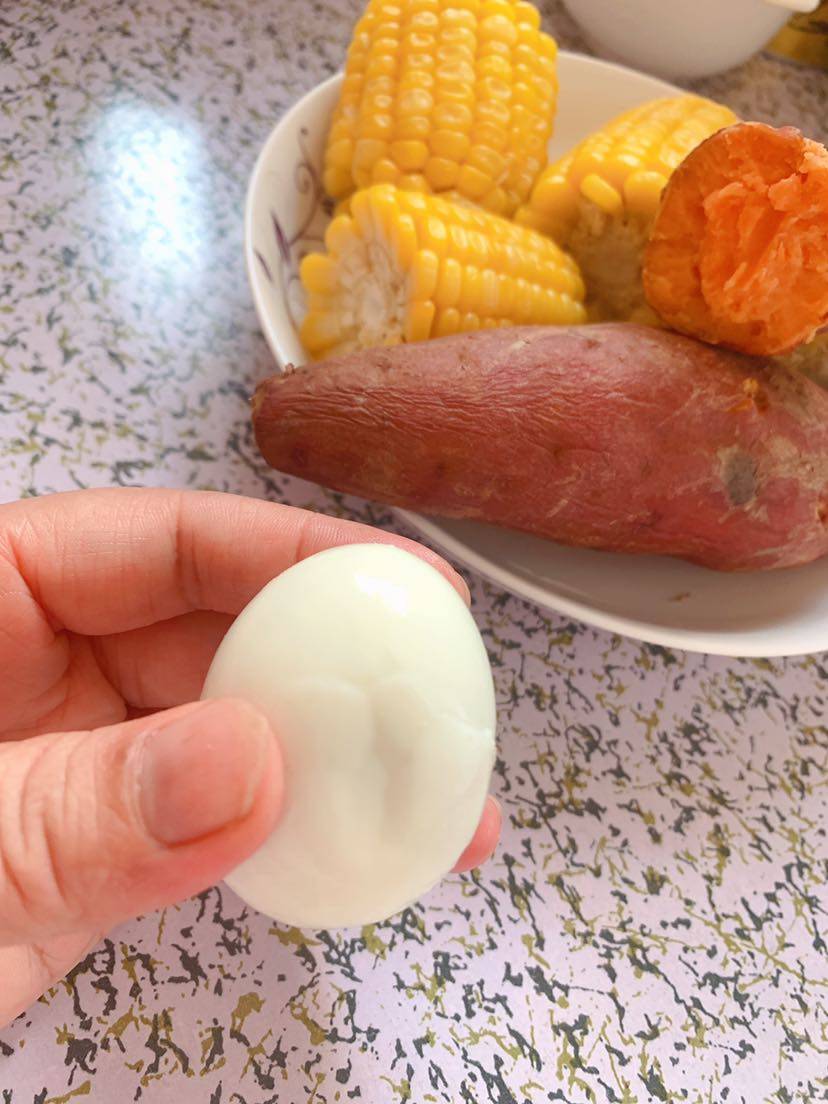 今天侄女回湖北,早上我煮了粥,蒸了玉米,红薯,青菜,蒸鸡蛋。