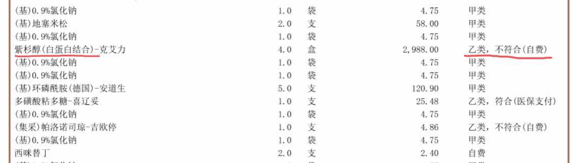 第一第二次化疗白紫用药全自费,第三次化疗白紫按乙类药品进行了约70%的医保报销,这回第四次去开药,又变成全自费,这才发现上次闹了个乌龙,教授的助理勾选错了,然后终于了解清楚了白紫的医保政策。紫杉醇注射液白蛋白结合型确实早已在基本医疗保险药品目录范围内,如需作为乙类药品进行医保报销,限联合化疗失败的转移性乳腺癌或辅助化疗后6个月内复发的乳腺癌患者,医保限制用药条件得一个字一个字对应咯,坐标广州。