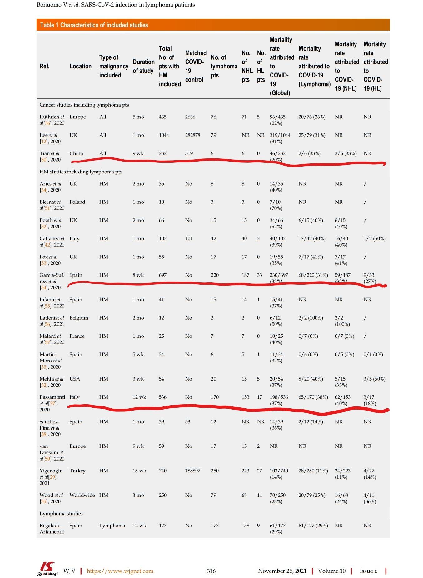 Bonuomo V, Ferrarini I, Dell'Eva M, Sbisà E, Krampera M, Visco C. COVID-19 (SARS-CoV-2 infection) in lymphoma patients: A review. World J Virol. 2021 Nov 25;10(6):312-325. doi: 10.5501/wjv.v10.i6.312. PMID: 34909405; PMCID: PMC8641038.