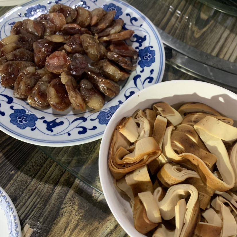 蒸的腊肠,买的五香干豆腐