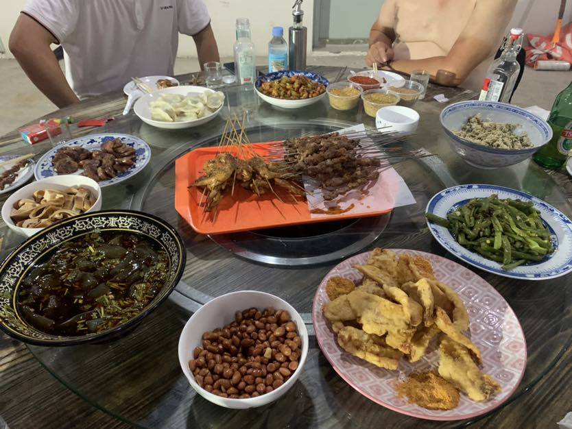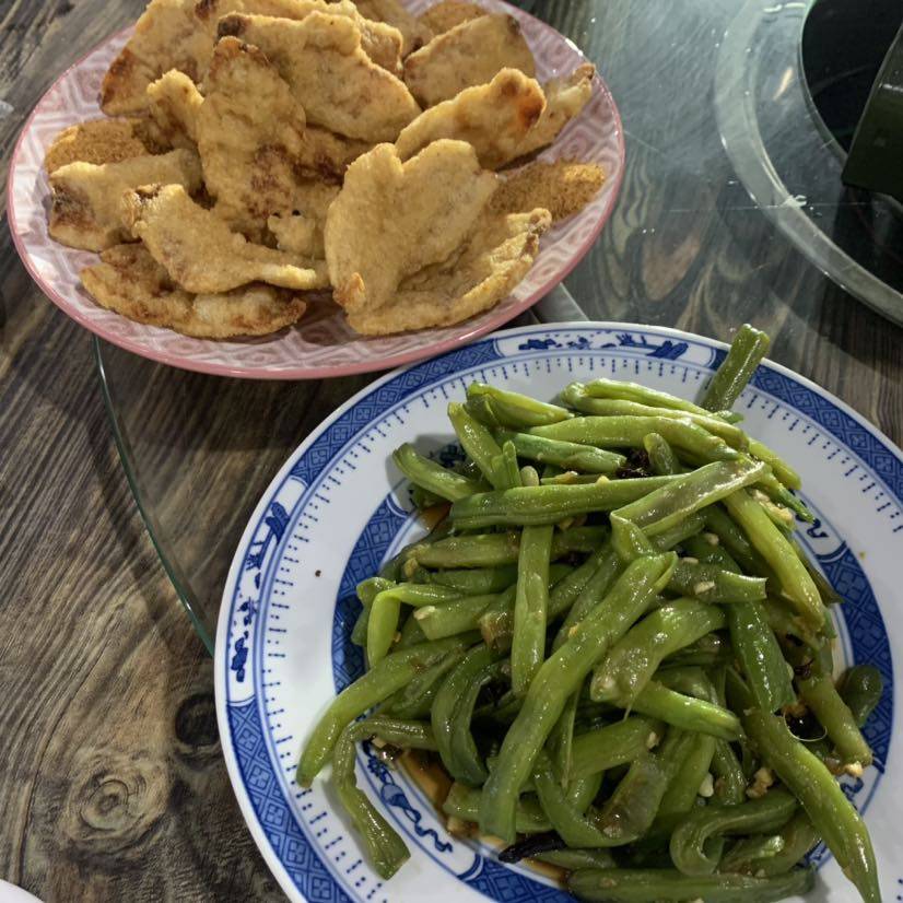 昨天七夕,同事说好一起过。地点还是单位的二楼平台,下着暴雨嗨皮😄感觉好极啦!我做的凉拌豆角,外面酒店送的干炸里脊肉