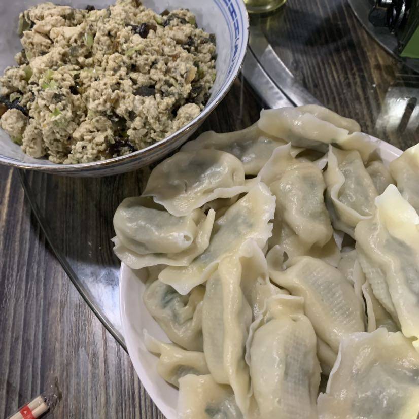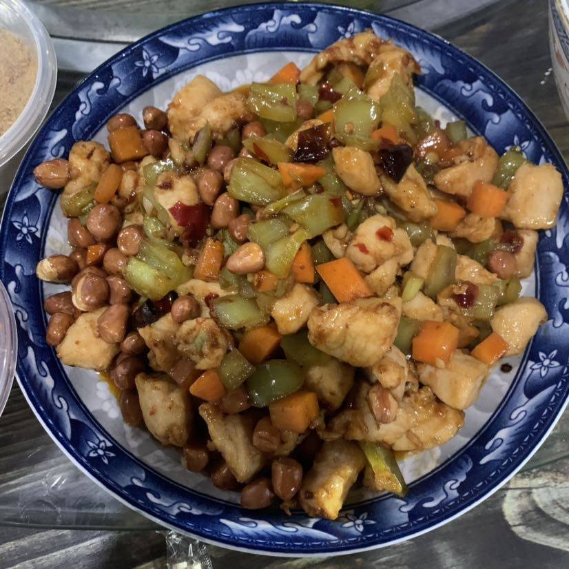 饭店送的宫保鸡丁和韭菜猪肉饺子