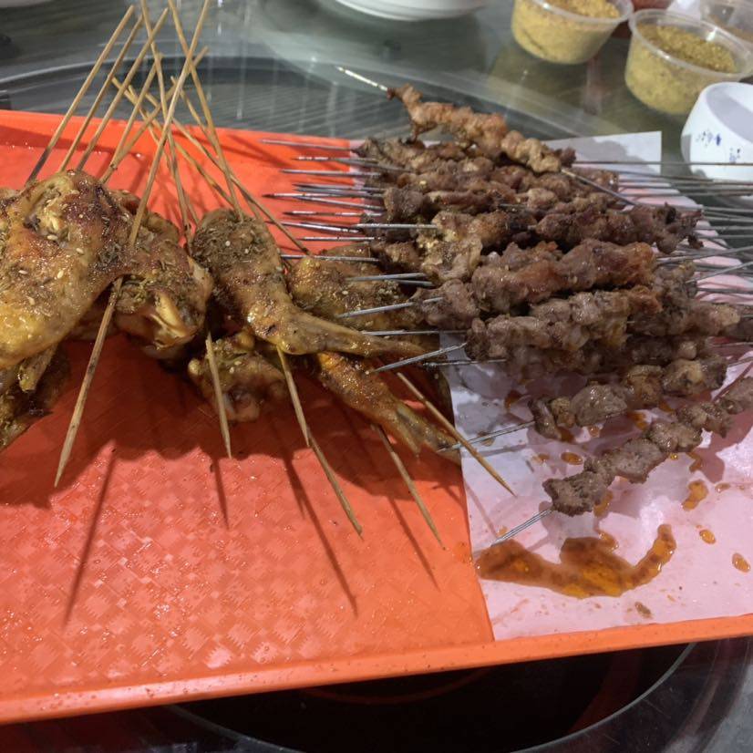 烤串和烤鸡翅,烧烤店加工的