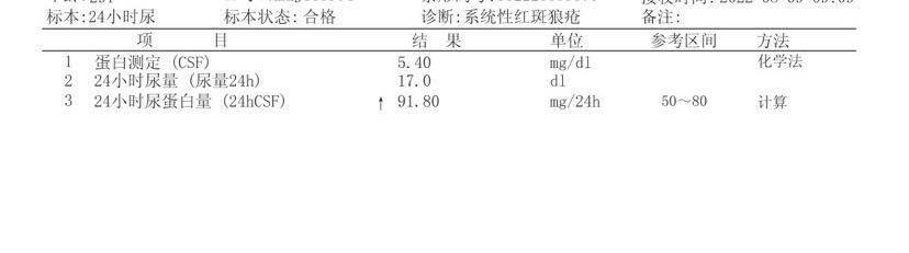 - 24小时尿蛋白,91.8mg,我们这边的正常值是50-80mg ,上一个月正常值尿蛋白总量80mg,