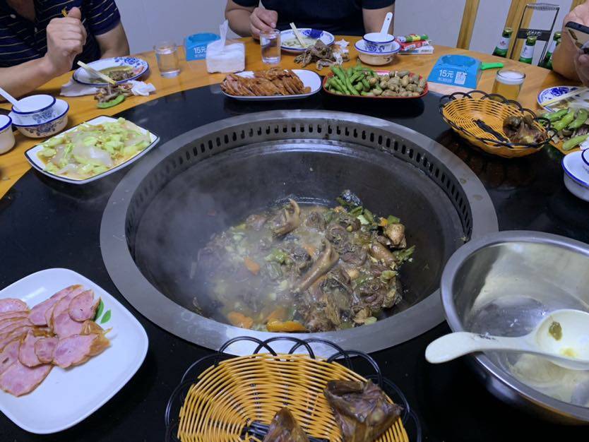晚餐🥣同事农村自家养的大公鸡,找一家铁锅炖加工。