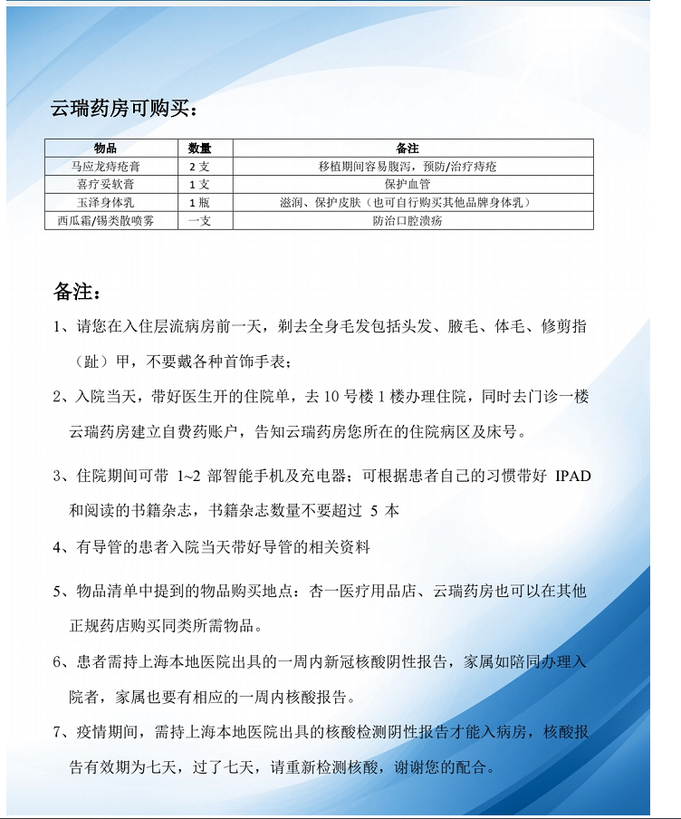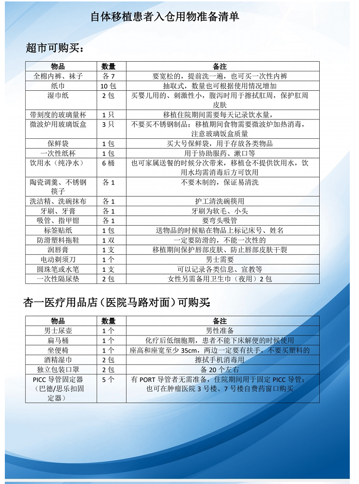 【医疗知识】 瑞金的移植前物品清单分享