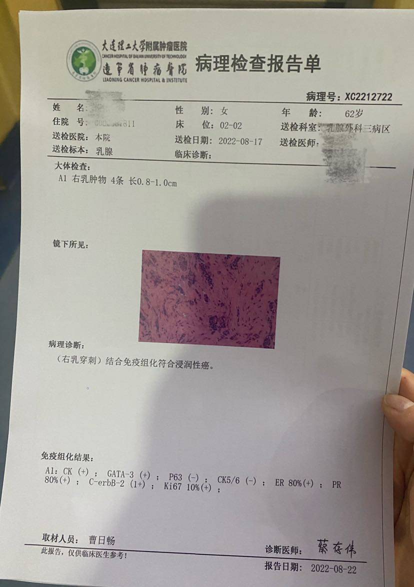 我妈妈得病了,半个月前查出乳腺癌,肿瘤不小40*28*34(mm),一系列的检查,没有骨、肝、头转移,后来去外地辽宁肿瘤医院看病,又核磁共振、穿刺到上周三第一次化疗,回来后各种观察妈妈的疗后反应,打生白针后,后背骨头疼两天,昏昏睡睡,这几天慢慢缓解多了,明天周三根据医生要求是化疗一周后第一次去医院检查血常规和肝肾功,祝福妈妈一切顺利,我会一直陪伴😘