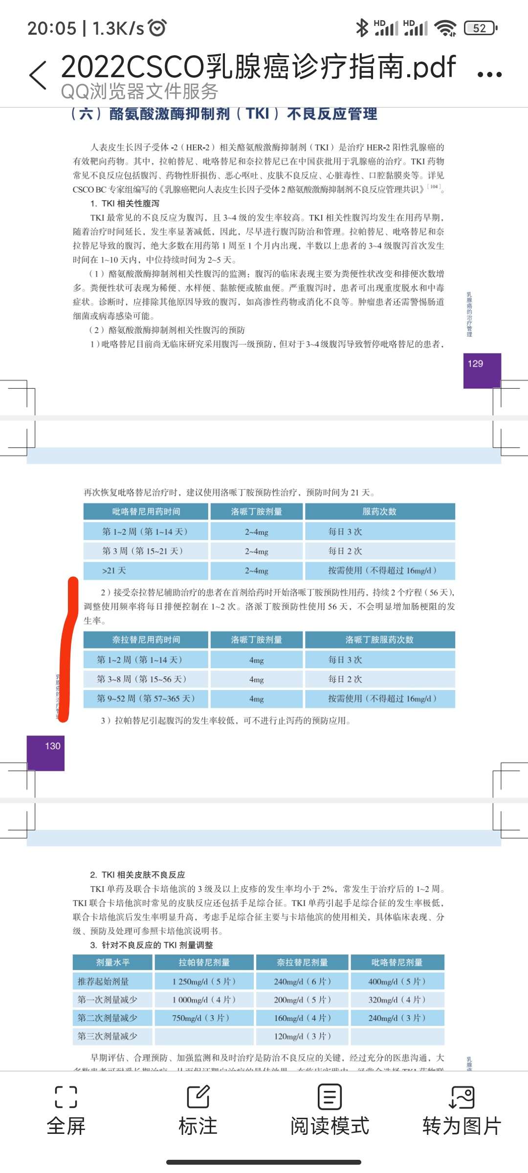 蜀山123奈拉替尼有三种方法: 一、你说的方案:前56天预防性服用止泻药,见图。这是厂家说明书与指南推荐方案,但三级腹泻率接近百分之三十。 二、剂量爬坡法:药厂做了几个全球药物副作用对比临床试验,近期得出结果,发现剂量爬坡法腹泻率最低,三级腹泻率降低一半。就是三粒一周(标准剂量是六粒,不吃易蒙停,如果不太耐受再延长一周),耐受四粒一周,再耐受六粒。不预防性吃易蒙停,腹泻吃易蒙停。 三、前两者结合:剂量爬坡法 预防性吃易蒙停。 觅健目前第三种最多,第二种次之,刚开始第一种吃的多现在最少了。