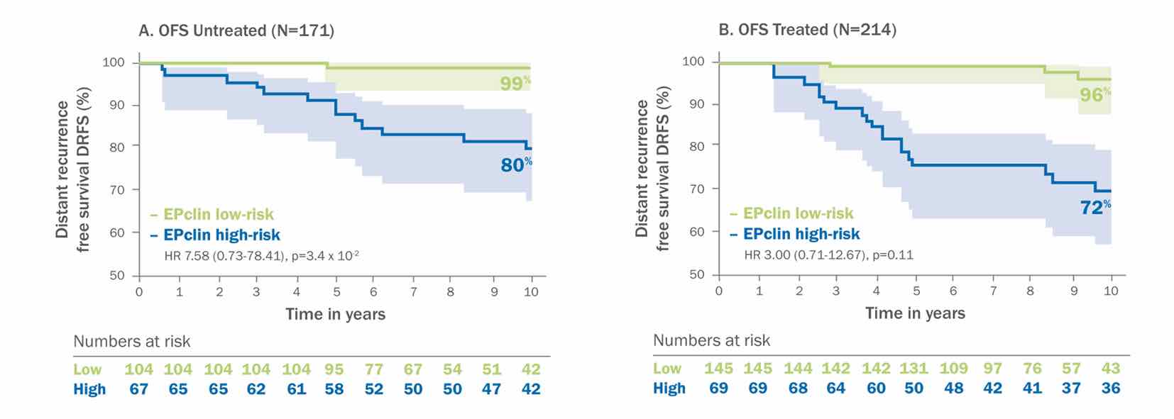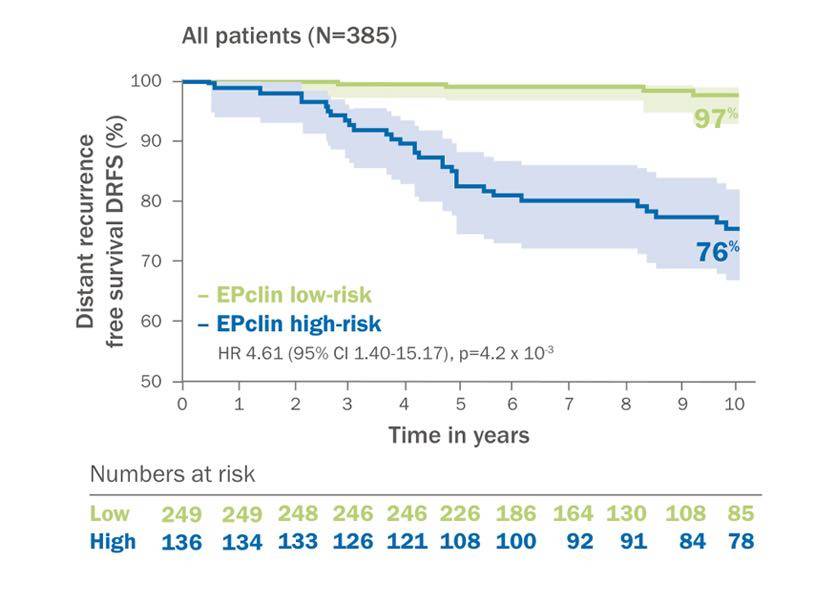 研究提示:EPclin评估为低危的患者10年DRFS为97%,而高危患者的DRFS则为76%。