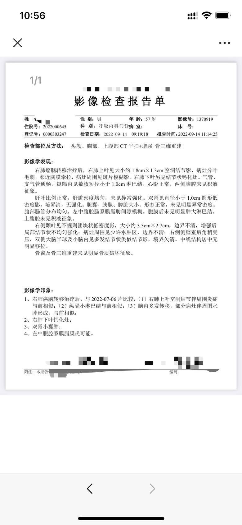 妈妈患肺癌已经有三年了,这三年来一直在接受治疗到现在,下面是妈妈检查以及治疗的过程。2010年10月,妈妈体检出肺癌IV期,纵隔淋巴转移,肝部转移,去省肿瘤医院复查,做了PET-CT,结果一样,省肿瘤