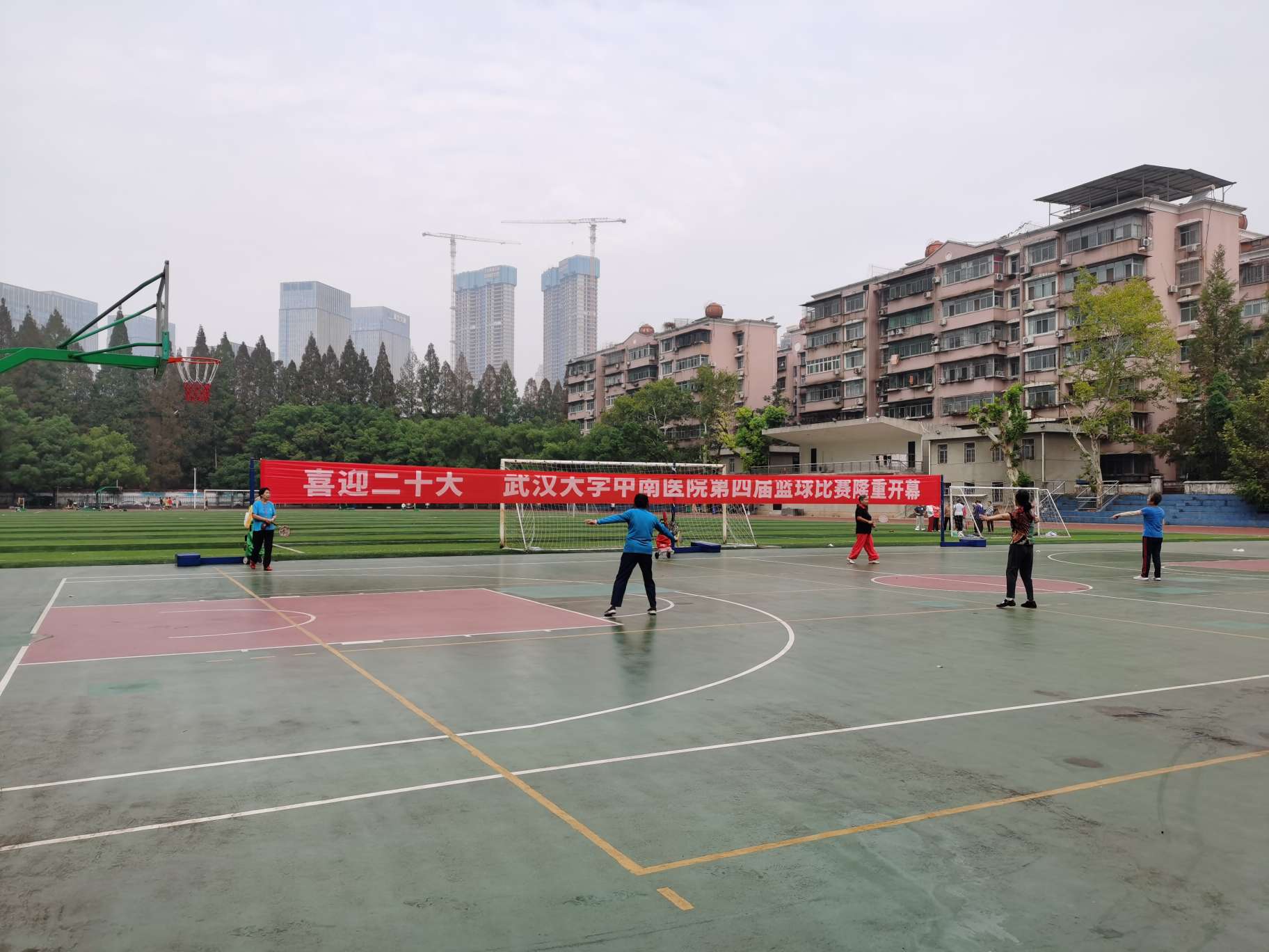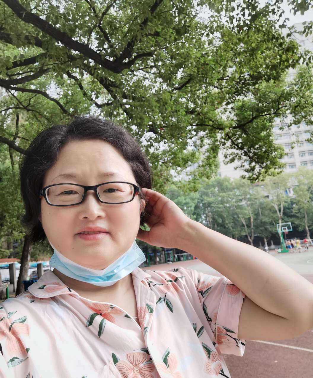早晨起来,跟老公一起下楼吃早餐,看到旁边的操场有人在锻炼,操场周围一圈的大树,幽静又养眼。很想也去散散步,就近的一个门居然用铁链子锁了,我们沿着操场围墙往下走,看到了一个敞开的小门,进去,散步,4938步,一个字,爽😄今天开始打化疗药,换白药水,愿没有毒副作用,一切安好!