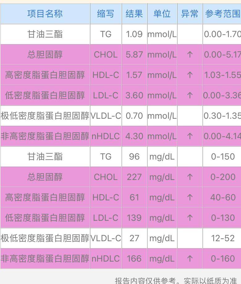 抽血除了血脂那块,指标高,其他的都正常了,前两个月血脂也高,医生没开药,估计这次是必须开药吃了,两个月都没降下来