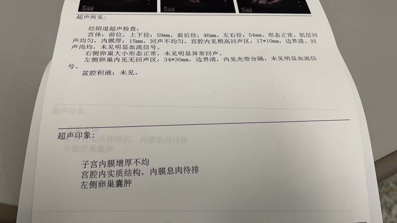 治疗过程太繁琐不一一说了,最开始做了刮诊效果并不好,属于治标不治本,有效果的治疗应该是打了一针亮丙瑞林和吃了5副调理子宫内膜的中药。