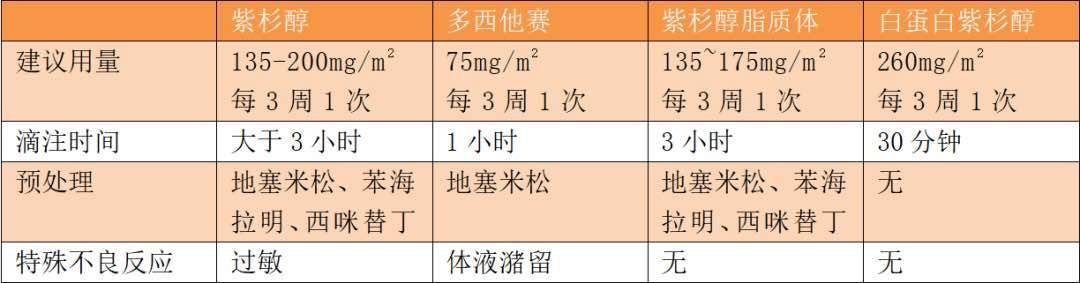 为预防紫杉醇可能发生的过敏反应,在使用前30分钟,静脉注射地塞米松5~10mg;肌肉注射苯海拉明50mg;静脉注射西米替丁300mg。