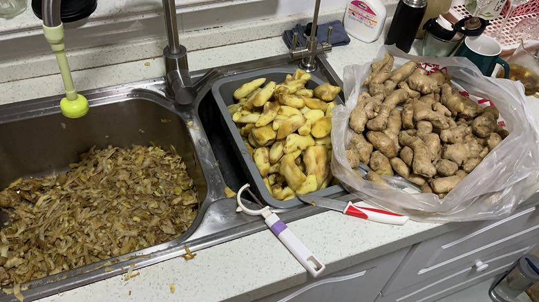 今天逛了市场,买了蒜,生姜各10斤,准备配料