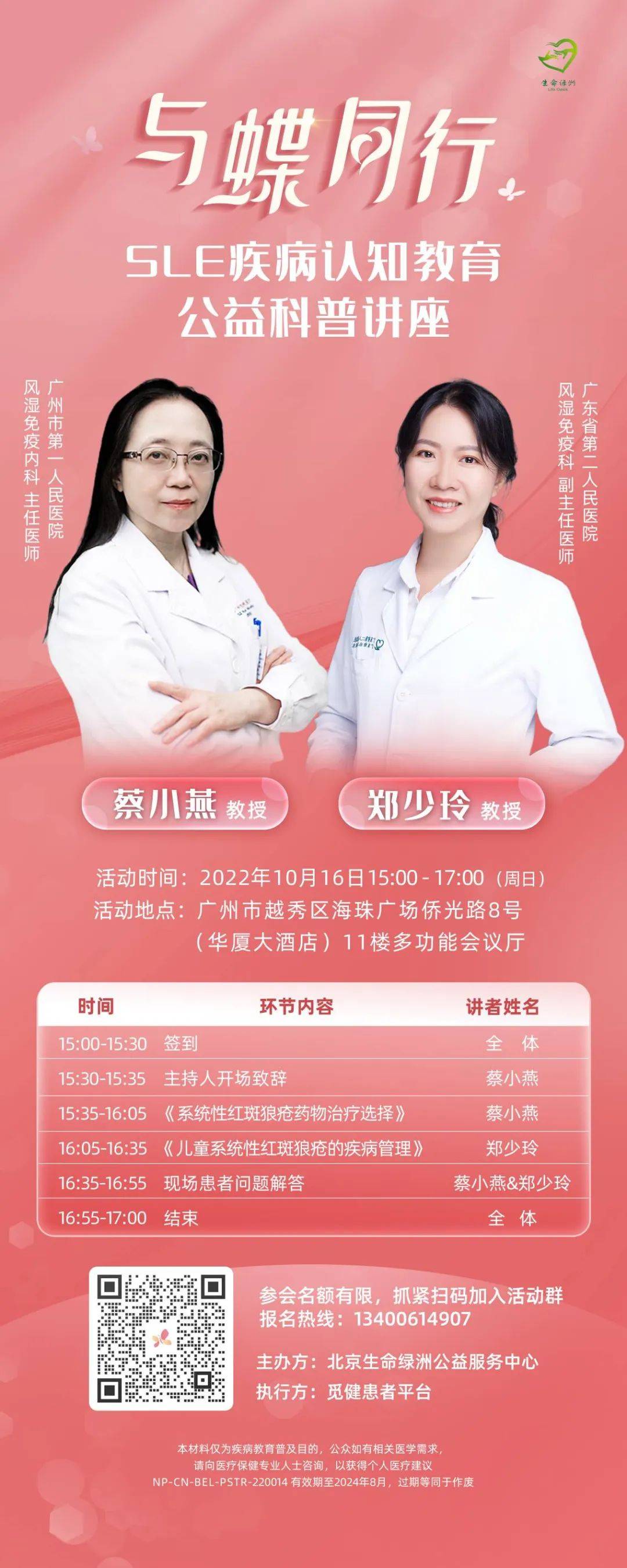 “与蝶同行”——SLE疾病认知教育项目广州场马上就要扬帆起航!