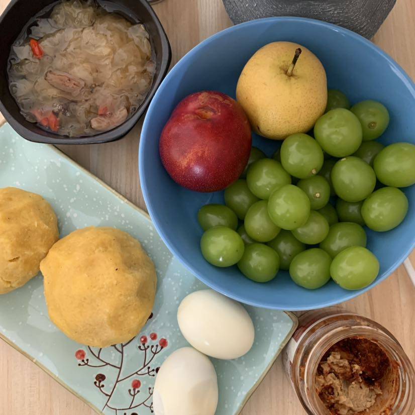 早餐🥣玉米面窝窝头,鸡蛋和银耳羹