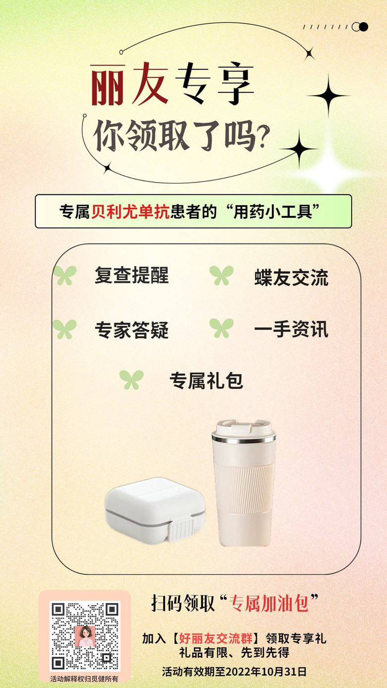 意外惊喜,收到了来自觅健的关怀,很开心!感谢平台多年来的关照,提供了很多疾病和药物相关的信息,让我们可以更充分的备战! 更感谢平台让我意识到不光是我自己在奋斗 还有那么多狼友伙伴们一起努力! 没有参加活动的朋友们快来加入我们吧?一起学习管理疾病一起奋斗!一起来分享贝利尤的用药经验!