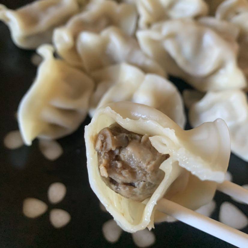 香菇猪肉馅的,是封控头一天老王买的送到小区门口,我委托隔壁大姐帮忙去小区门口取回来的,当地有名气饺子连锁店的饺子。
