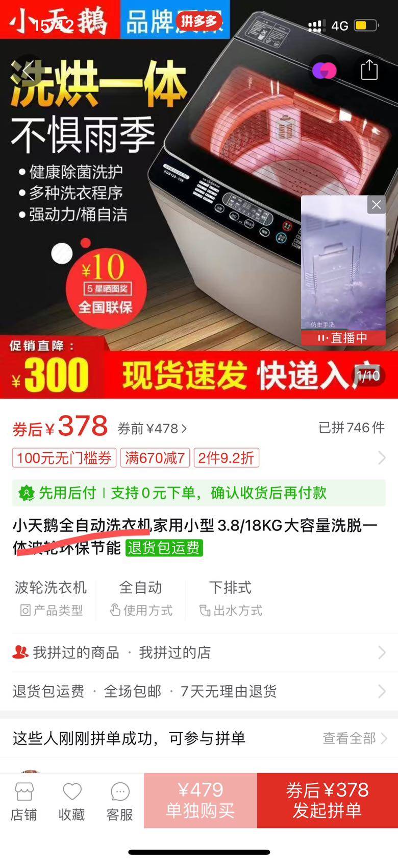 因为图便宜,我掉坑里了。拼多多上有一款小天鹅全自动洗衣机销量高,价格才四五百,评价还说是正品。以这样的价格买小天鹅的品牌,我心里暗暗窃喜,几乎没有犹豫就拍下了。没想到收到