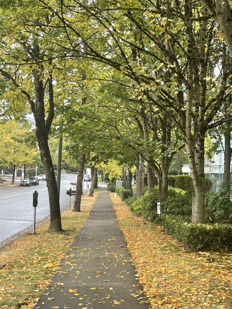 一场雨后,门前的路上黄叶遍地,城市立刻更换了衣装,是不是很美呢?