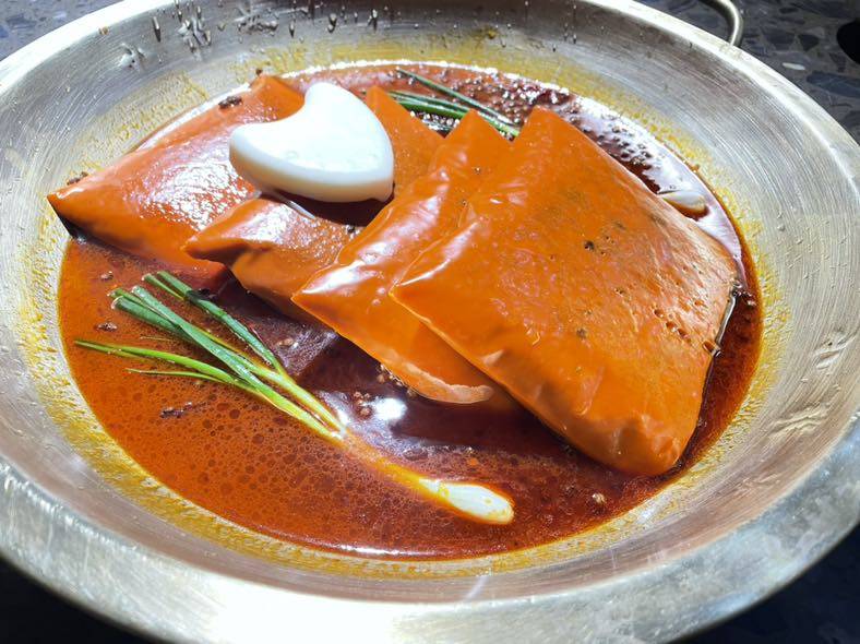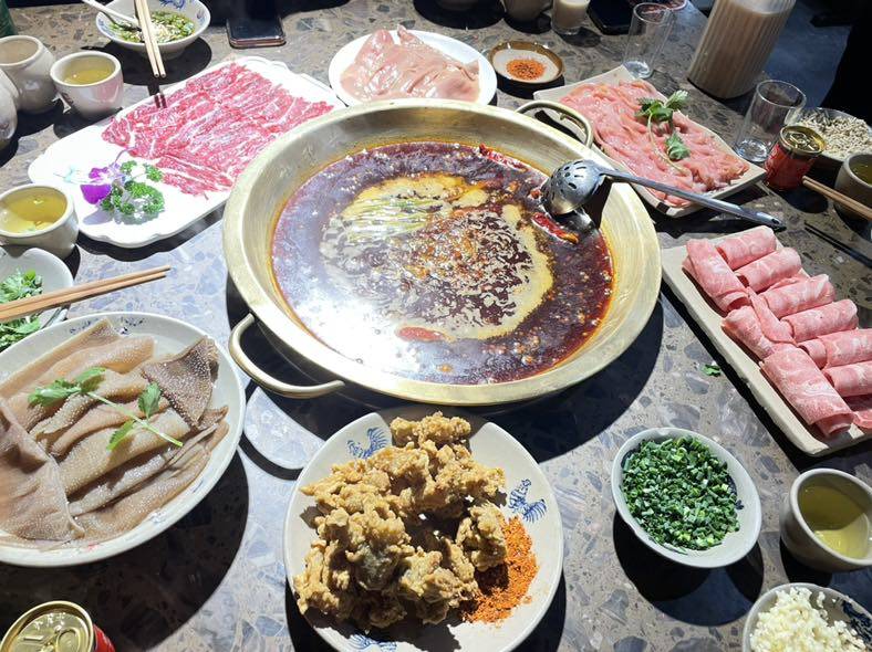 今天是孩子的干爹生日,少不了去庆祝吃他一顿。孩子也可以出门了,干妈问他想吃什么,当然是麻辣鲜香的火锅咯,而且一定是红锅,不要鸳鸯锅,就要辣个痛快。我们也是好久没餐馆堂食,终于又可大快朵颐了。油脂确实太高,不健康饮食,偶尔为之。