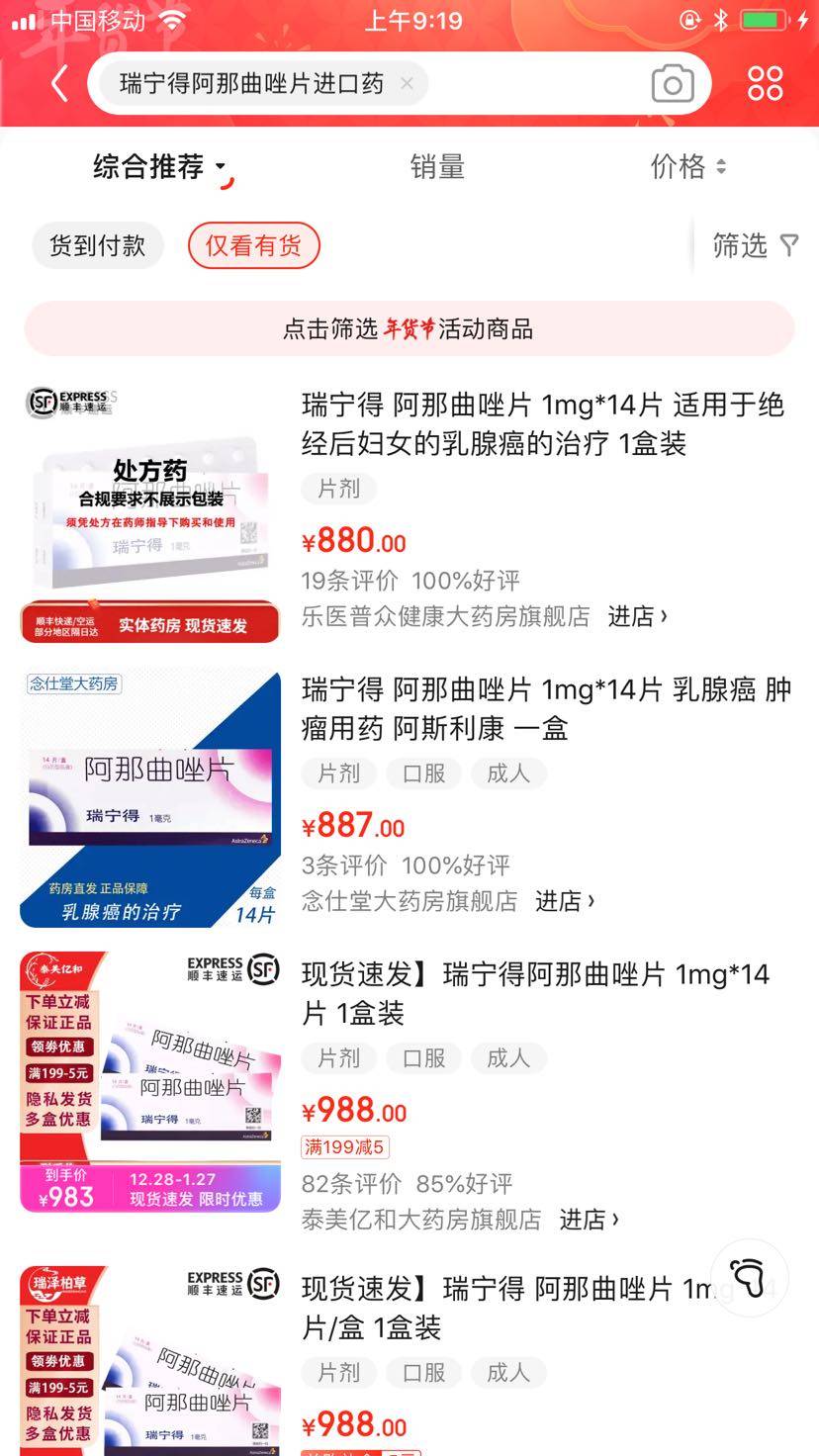 我们这也没有瑞宁得了。网上太贵了。医生说你已服完五年,相对复发风险小了。手中还有几盒服完,我也将换国产的了。