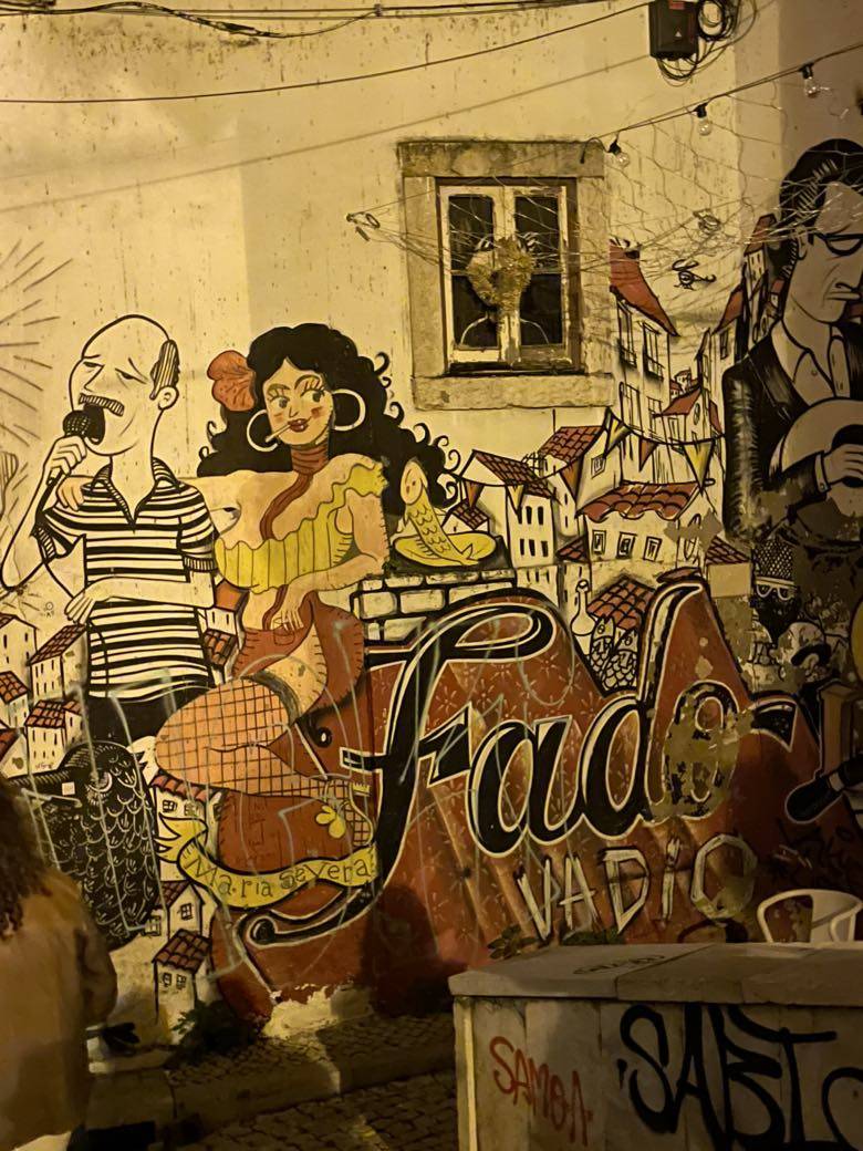 回到里斯本,加入了一个小型的fado活动安排。十来个人在导游带领下夜游alfama老城区,看看墙上的涂鸦,听听fado的历史,最后在一个小饭店晚餐,并聆听fado艺人的现场演唱。