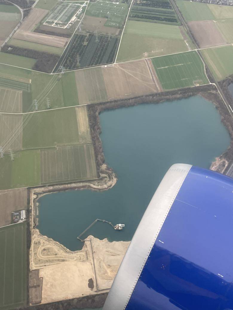 舷窗之外,大地静谧如仙子的梳妆台,各色青黛在等待仙子的指尖涂抹,而水面如镜,在等待仙子的临水照花。