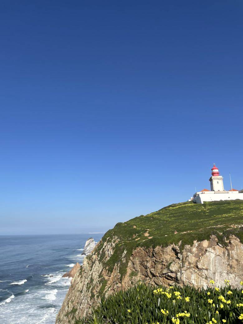 距里斯本40公里的罗卡角,岩石垒垒,遍地的多肉绿叶黄花,峭壁下浪花卷起千堆雪