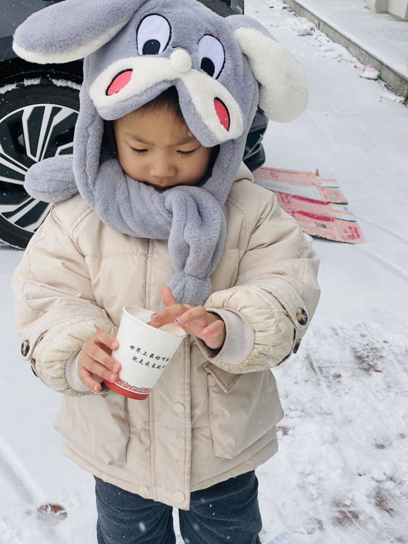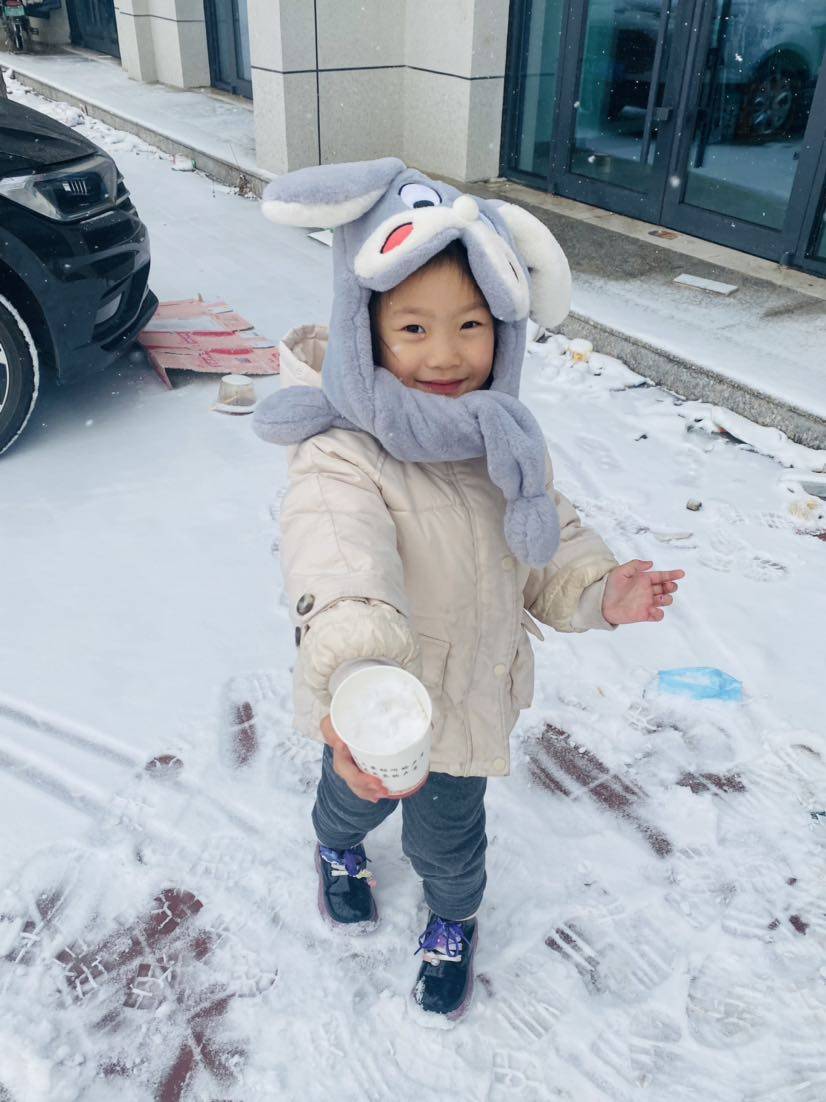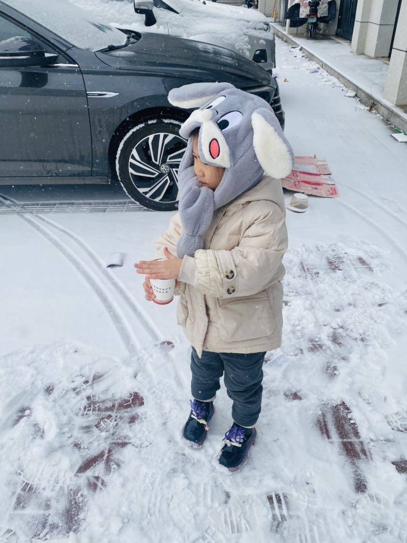 聊城的初雪来啦,小家伙开心的不得了,