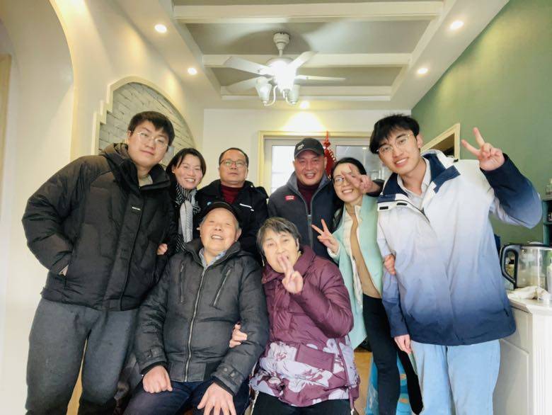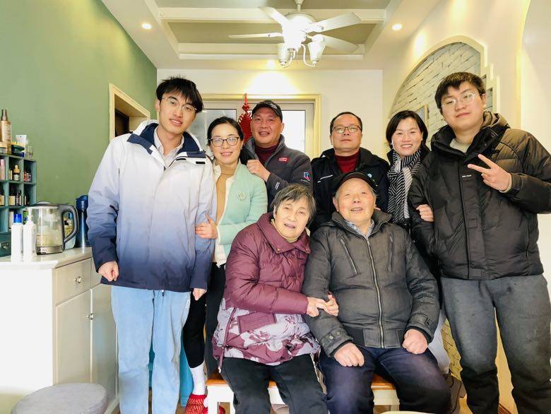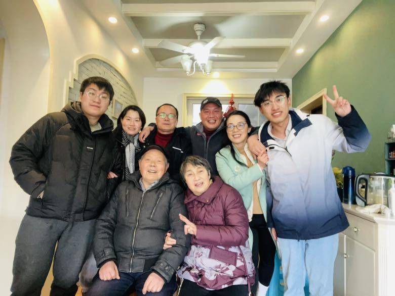 大家一起吃饭一起聊天的气氛特别好,两个孩子特别能聊,展望未来,他们说这样吃特别有感觉。再围绕父母拍一张全家福,定格此刻的幸福。