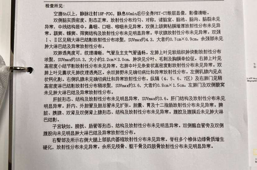 2022.12.28 增强CT怀疑左肺上叶CA可能。petct基本确定肺癌,没有检测到转移,但有部分淋巴结稍增大,怀疑炎性。肿瘤标志物中,一项CEA异常,11.2,正常范围0-5。