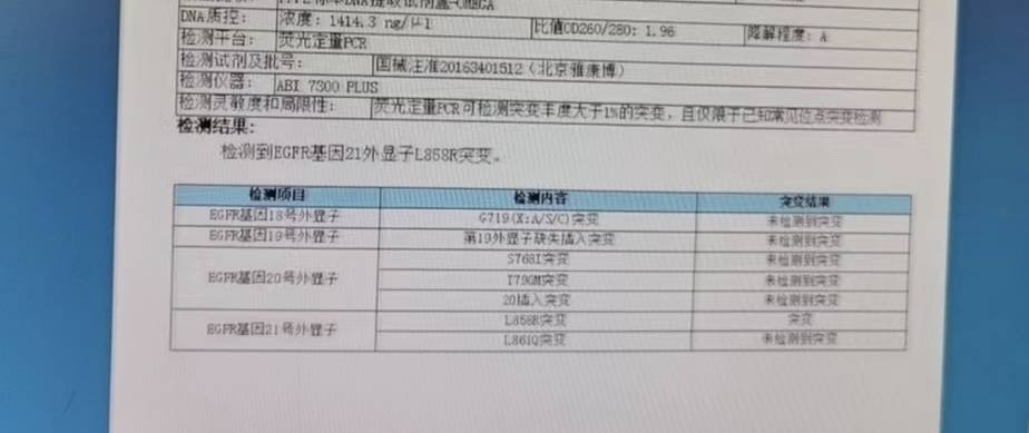 5.基因检测的问题:因为医生的建议,在医院做的基因检测,只测了ALK和EGFR,最终检测到EGFR21突变,担心有其他未检测的突变影响治疗效果,有必要再做一次基因检测吗?