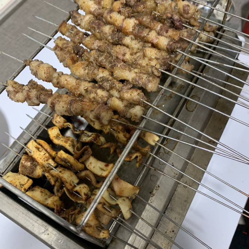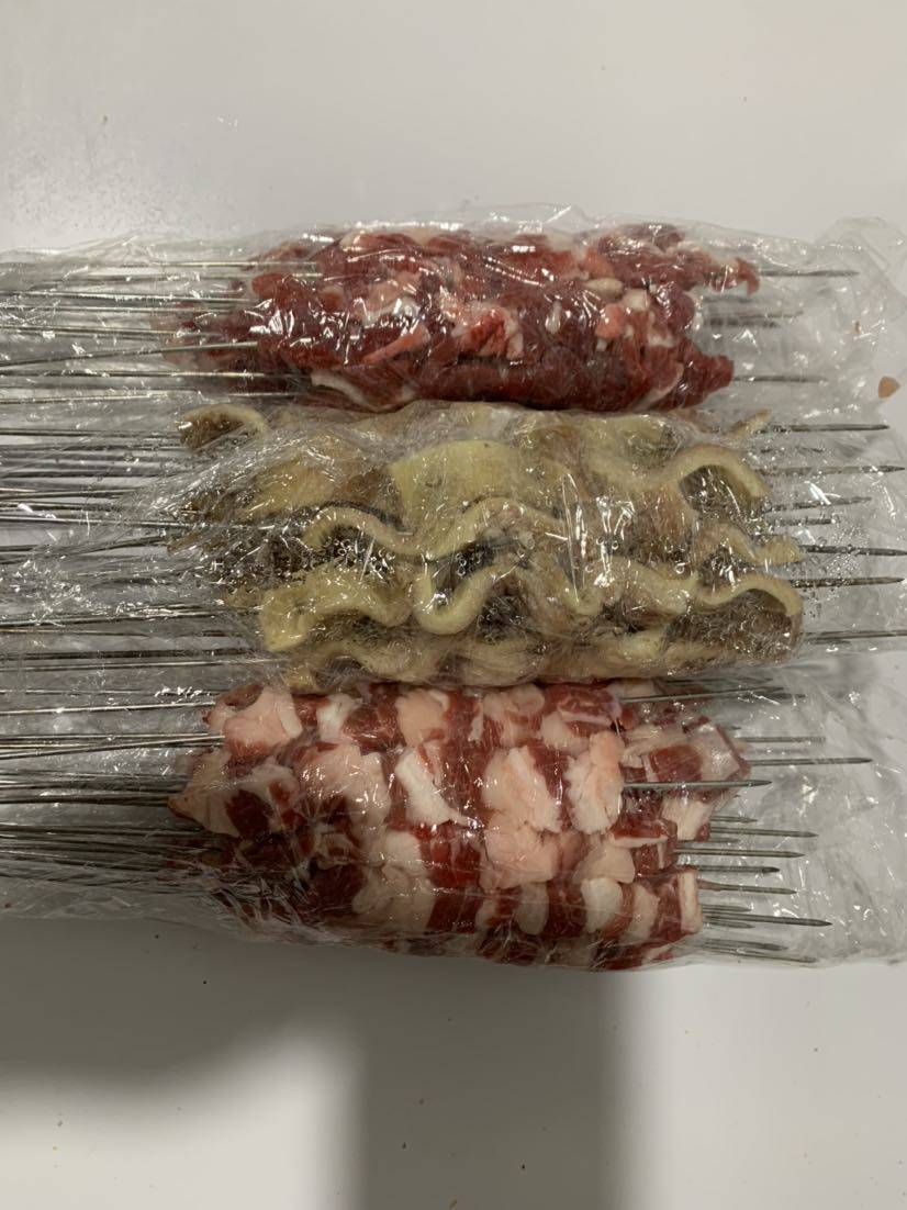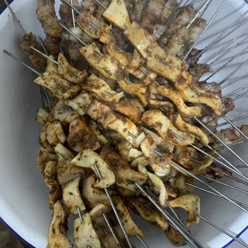 晚餐🍖牛肉串、牛心管、羊肉串。老王改刀,我穿串。