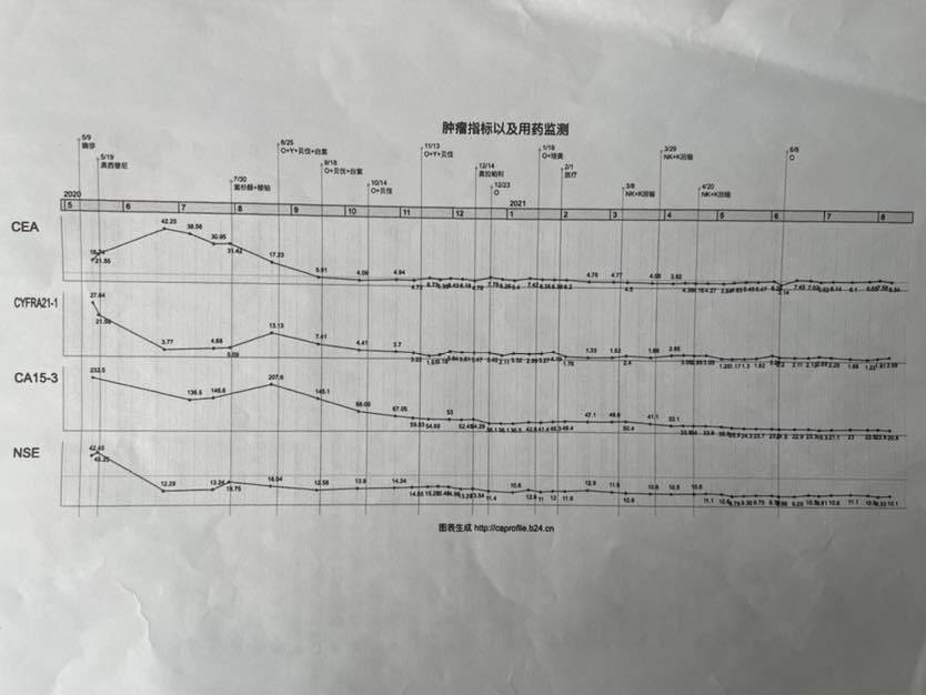 所以在此建议所有患者和家属不要忽视肿瘤标志物的含义,哪怕现实很多医生认为这不重要,尽力观察,找到属于患者个体化的敏感肿瘤标志物,这对于我们判断和把握病情,有着非常重要的意义。医生严重的影像检查固然是准确的,是金标准,但往往是滞后的粗糙的,譬如有的脑膜转移的患者可能状态极度糟糕了,但是脑核磁影像看上去还是没有什么大的变化。还有就是有一些检查的手段,譬如穿刺病理之类的,往往是有风险的,痛苦的。而只是查个血,简单便捷,却能够让我们有机会提前发现治疗手段是否有效,是否耐药等,对比起来就简单方便太多了。