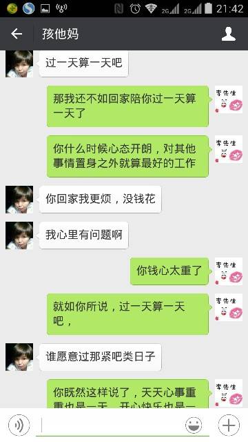 出去找点事做,挣钱多少是其次,老是一个人待着没事干,没病的也胡思乱想的有病了