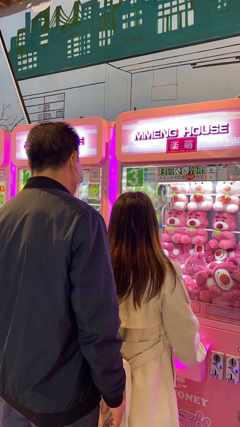 最后叔叔阿姨没夹到,我送了他们夹的这个小熊给阿姨。阿姨开心得跳了几下,叔叔默默走在后面看着哈哈。