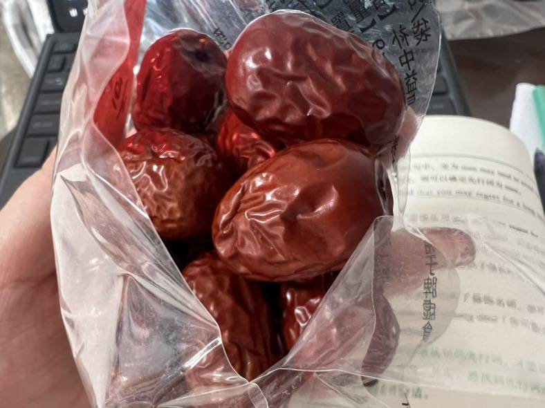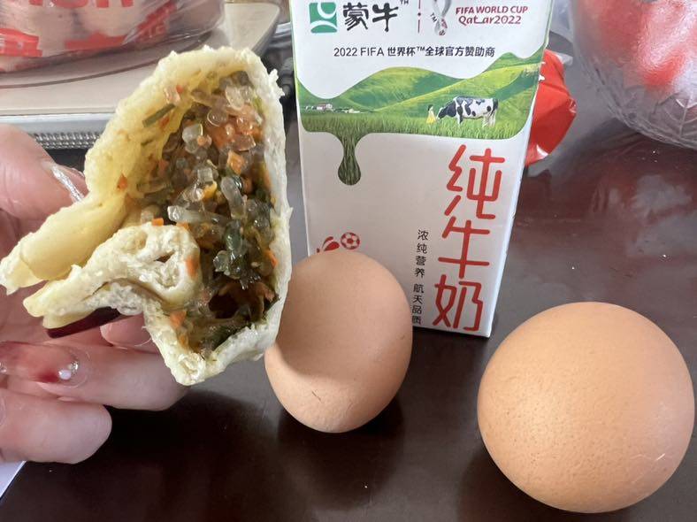 早餐吃的两个鸡蛋白🥚大包子(姥爷包的,其貌不扬但奈何不住它好吃,面也是自己杆的,很有营养~)牛奶🥛(没有鲜奶了,只能喝盒装凑数)和红枣,这个红枣很好吃,小小的,枣皮也不刮嗓子(确定过眼神,是对的枣子🌝)