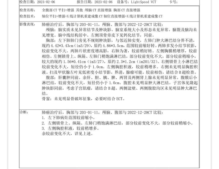 今天是过来准备做第三次化疗,早上做了增强ct,做完就跑到医生的电脑上看片子,医生惊喜的说明显好转!肺炎也吸收了!我差点哭出来,随即去找主治医师,主任看完片子很淡定,说只能说SD+稍好转,维持原方案继续化疗,同时建议咨询放疗科,要不要介入放疗。今天暂时没联系得上主任推荐的放疗科医生,找了另一位医生看了下,这位医生也很认真负责,详细看了资料,建议做一个骨扫描,如果没有骨转,就立马做放疗,也想问问大家,现在这个时候引入放疗合适吗?